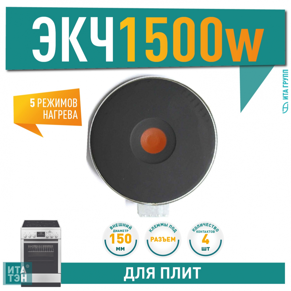 Чугунная конфорка для электрической плиты Ariston, Indesit, Gefest, Beko 1500 Вт, 145мм универсальная, 614515